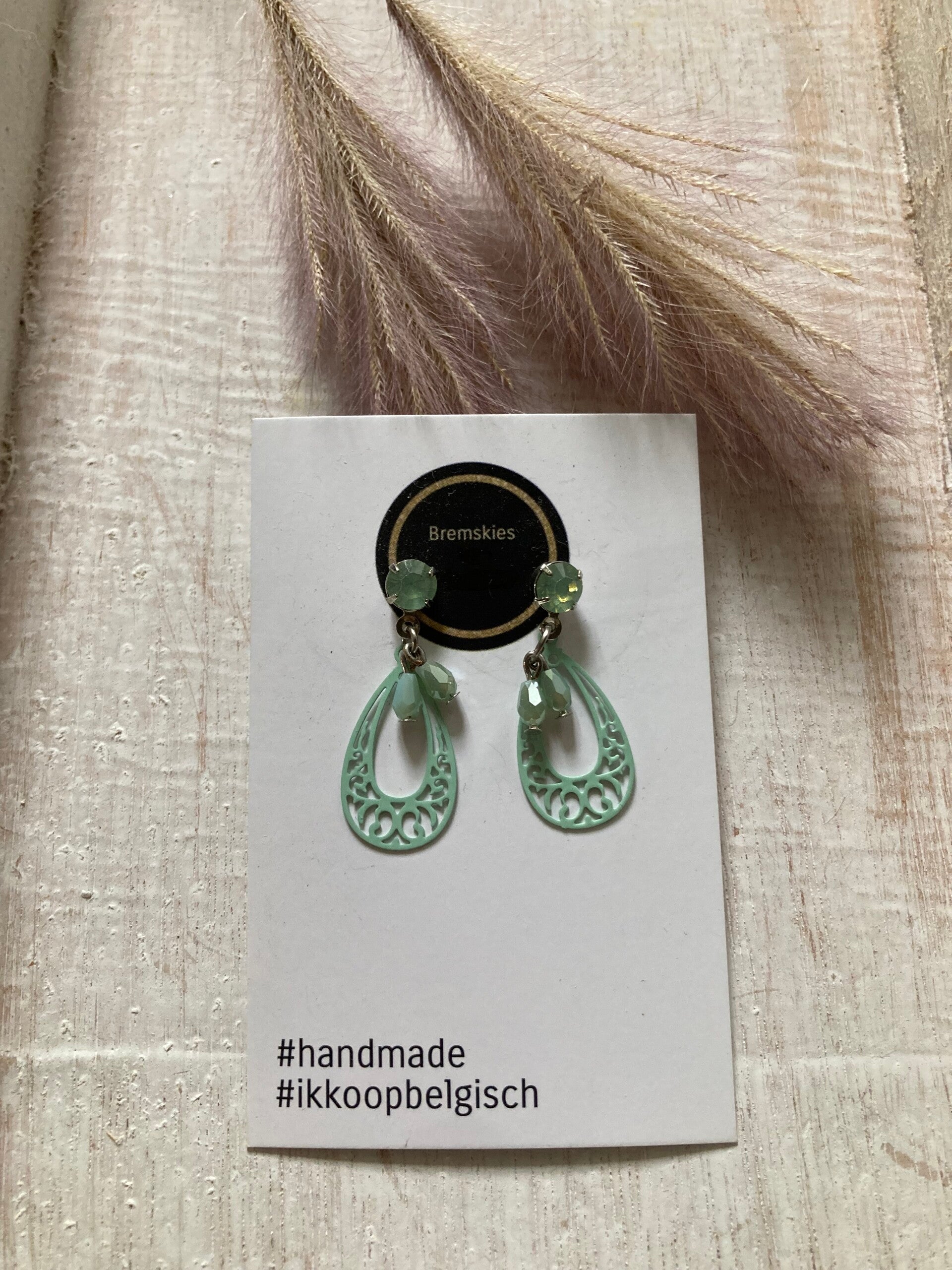 Deze oorbellen zijn afgewerkt met zilverkleur. Ze zijn super licht om te dragen en bevatten swarovski steentje in de kleur mintgreen. Ideaal wanneer je fijne oorbellen wenst of je haar opgestoken is.