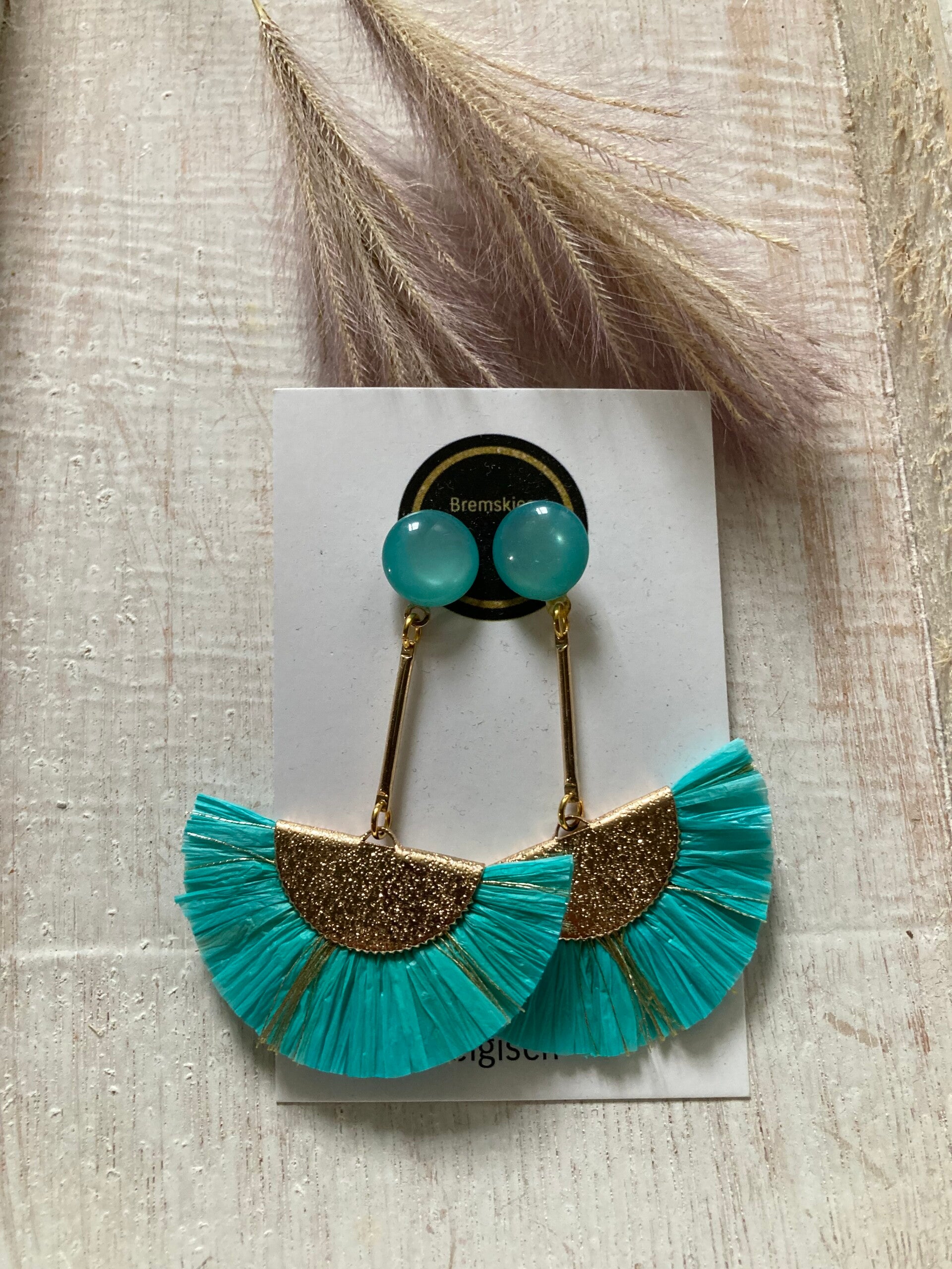 Deze fashionable oorbellen zijn afgewerkt met goudkleur. De waaiers zijn van kunststof. Deze vrolijke oorbellen maken je outfit helemaal af.