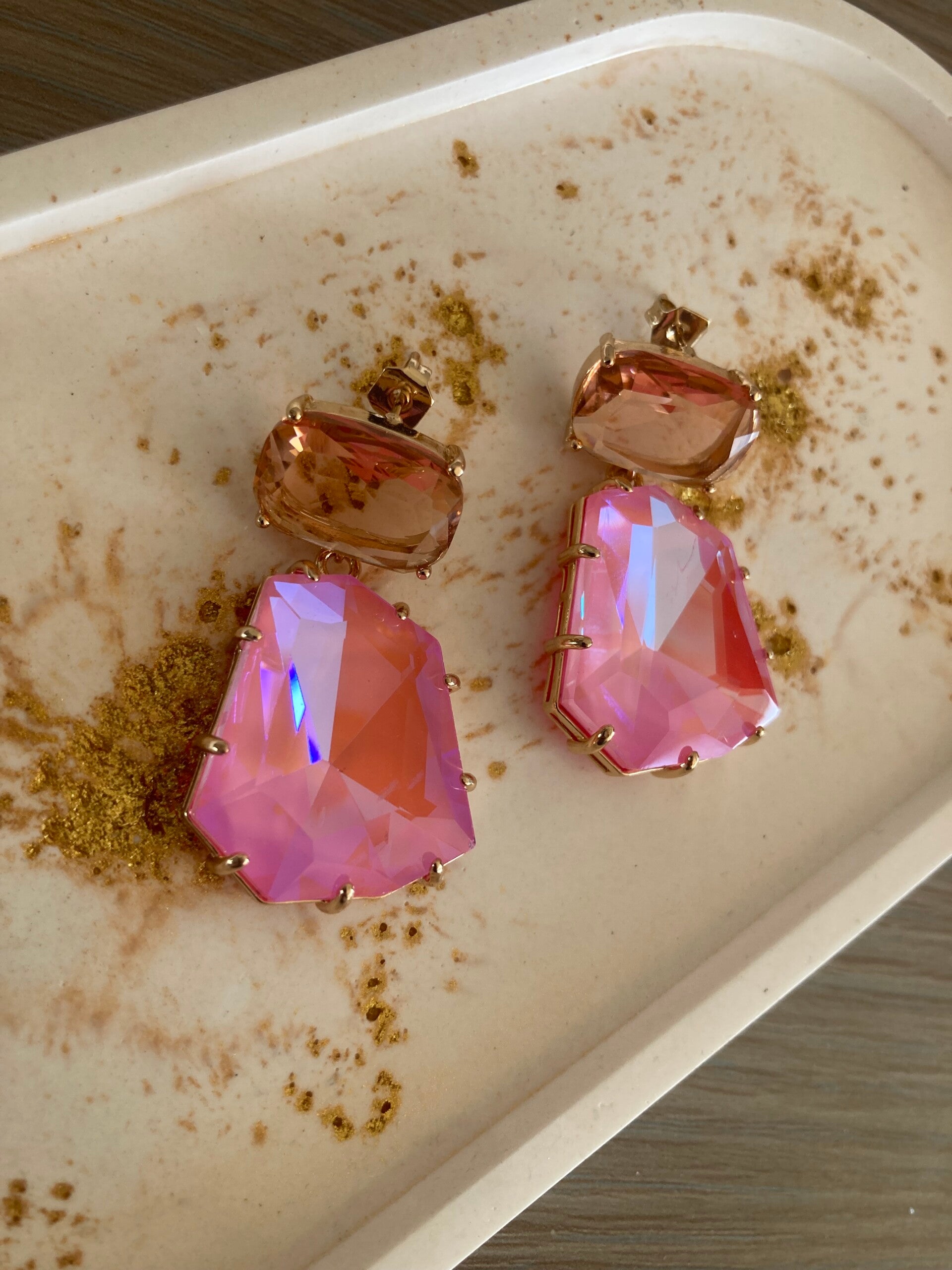Sofiana is een variant op de Sofia oorbellen. Een van onze eyecatchers uit deze collectie. Deze oorbel bestaat uit een rechthoekige gekleurde oorsteker met roze, blauwe of grijze veelhoekige hanger.