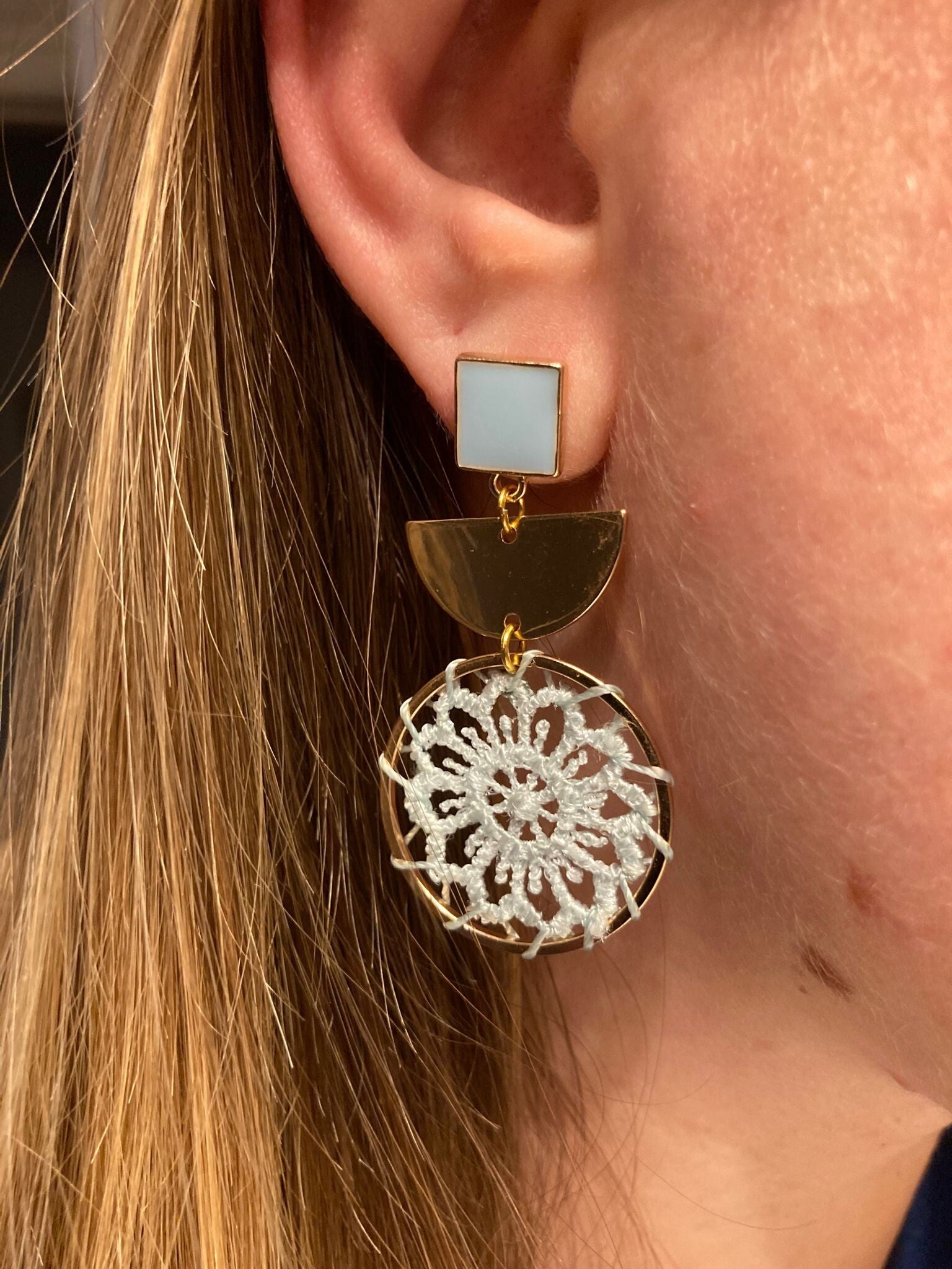 Deze oorbellen zijn beschikbaar in fushia of lichtblauw